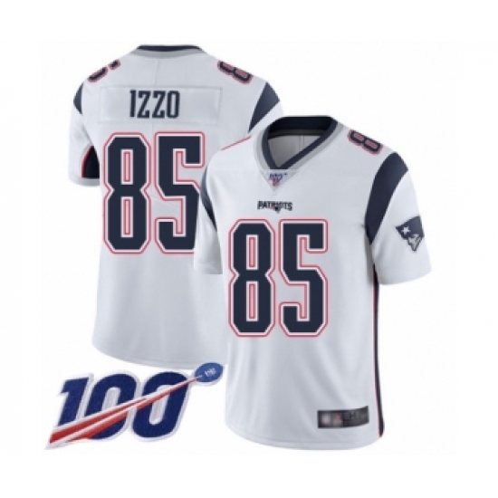 Men's New England Patriots #85 Ryan Izzo White Vapor Untouchable Limited Player 100th Season Football Jersey