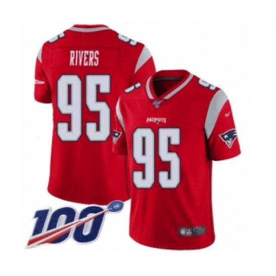 Men's New England Patriots #95 Derek Rivers Limited Red Inverted Legend 100th Season Football Jersey