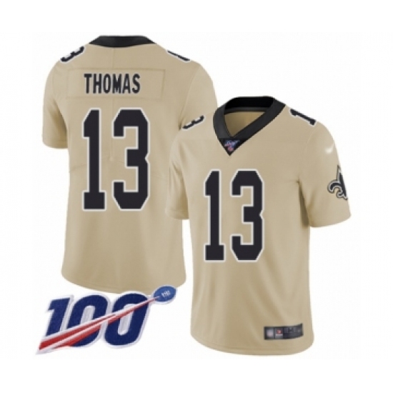 >Youth New Orleans Saints #13 Michael Thomas Limited Gold Inverted Legend 100th Season Football Jersey