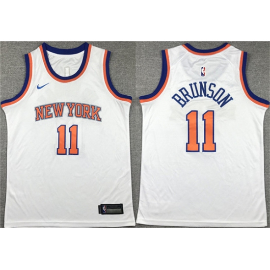 Youth New Yok Knicks #11 Jalen Brunson White Association Edition Stitched Swingman Jersey