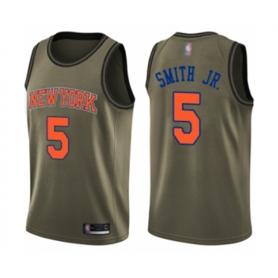 Youth New York Knicks #5 Dennis Smith Jr. Swingman Green Salute to Service Basketball Jersey