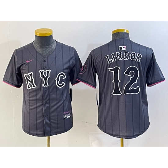 Youth New York Mets #12 Francisco Lindor Grey 2024 City Connect Cool Base Stitched Jersey