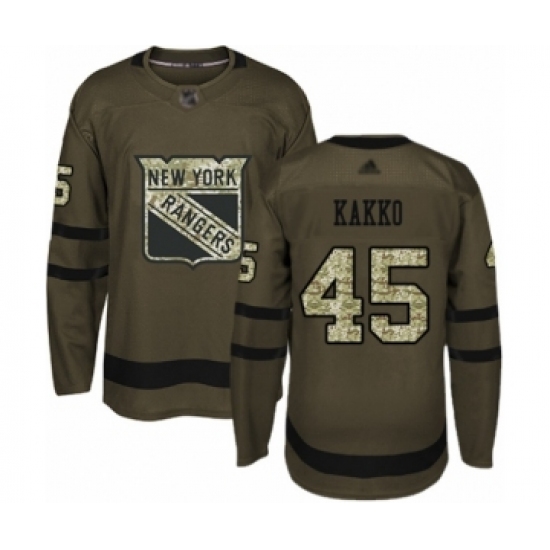 >Youth New York Rangers #45 Kaapo Kakko Authentic Green Salute to Service Hockey Jersey
