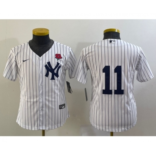 >Youth New York Yankees #11 Anthony Volpe White Rose No Name Stitched Nike Cool Base Jersey