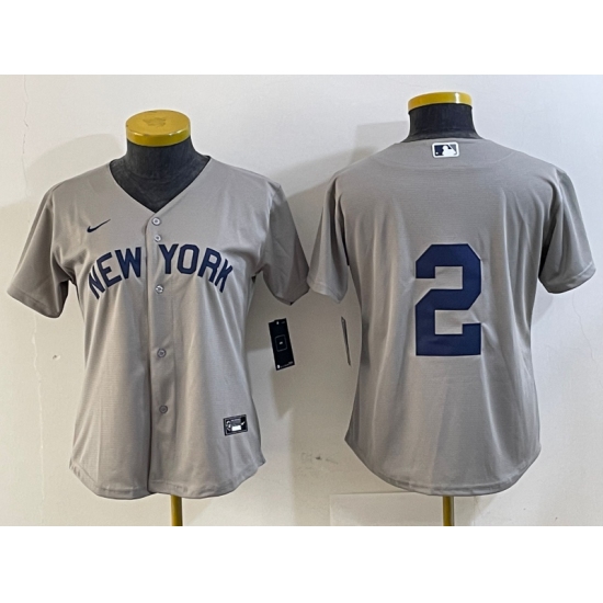 >Youth New York Yankees #2 Derek Jeter Gray Field of Dreams Cool Base Jersey