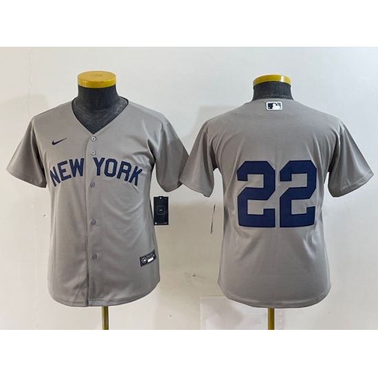 >Youth New York Yankees #22 Juan Soto Gray Field of Dreams Cool Base Jersey
