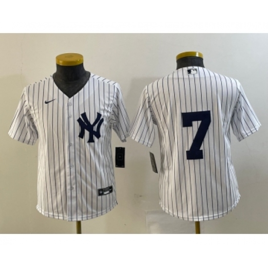 Youth Majestic New York Yankees #7 Mickey Mantle Replica White Name Back MLB Jersey