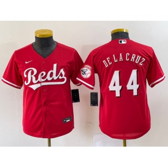 >Youth Nike Cincinnati Reds #44 Elly De La Cruz Red Cool Base Stitched Baseball Jersey