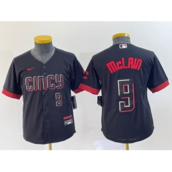 >Youth Nike Cincinnati Reds #9 Matt McLain Number Black 2023 City Connect Cool Base Stitched Jersey2