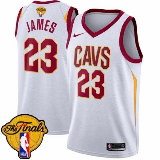Men's Nike Cleveland Cavaliers #23 LeBron James Authentic White 2018 NBA Finals Bound NBA Jersey - Association Edition