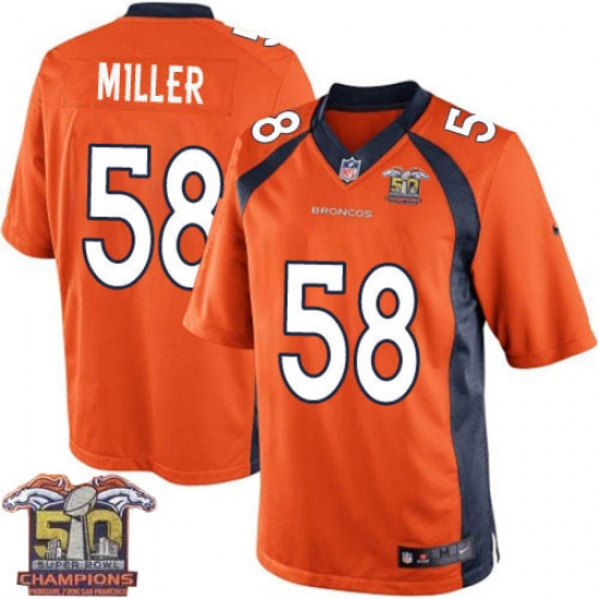 Youth Nike Denver Broncos #58 Von Miller Elite Orange Team Color Super Bowl 50 Champions NFL Jersey