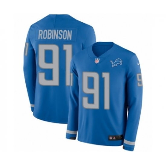 Youth Nike Detroit Lions #91 A'Shawn Robinson Limited Blue Therma Long Sleeve NFL Jersey
