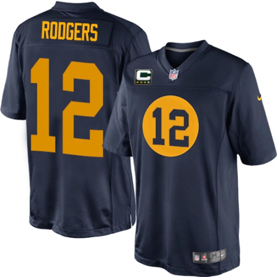 Youth Nike Green Bay Packers #12 Aaron Rodgers Elite Navy Blue Alternate C Patch NFL Jersey