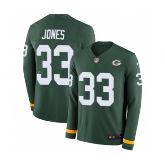 Youth Nike Green Bay Packers #33 Aaron Jones Limited Green Therma Long Sleeve NFL Jersey