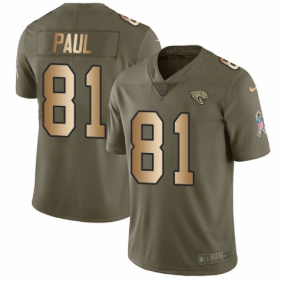 Youth Nike Jacksonville Jaguars #81 Niles Paul Limited Olive/Gold 2017 Salute to Service NFL Jersey
