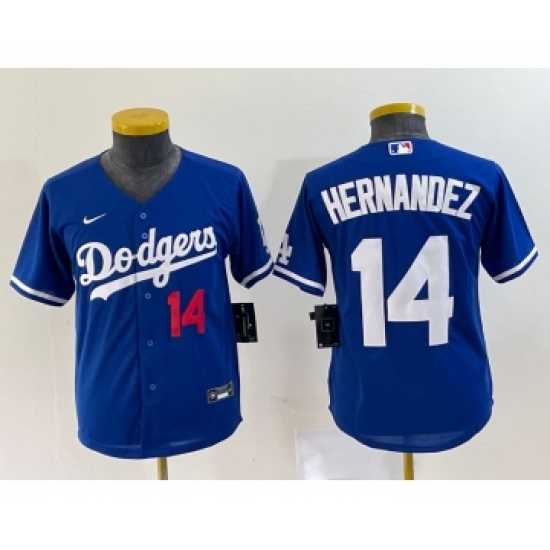 Youth Nike Los Angeles Dodgers #14 Enrique Hernandez Blue Stitched Cool Base Jersey