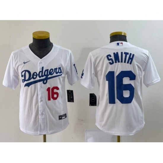 >Youth Nike Los Angeles Dodgers #16 Will Smith Number White Stitched Cool Base Jersey