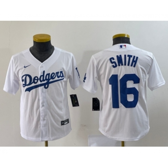 >Youth Nike Los Angeles Dodgers #16 Will Smith White Stitched Cool Base Jersey