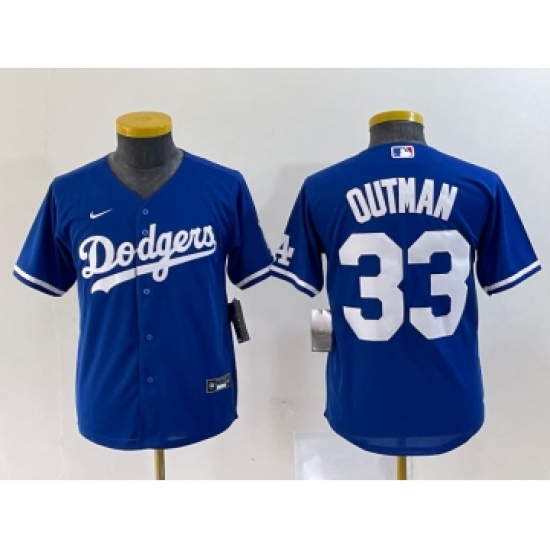 >Youth Nike Los Angeles Dodgers #33 James Outman Blue Cool Base Stitched Jersey