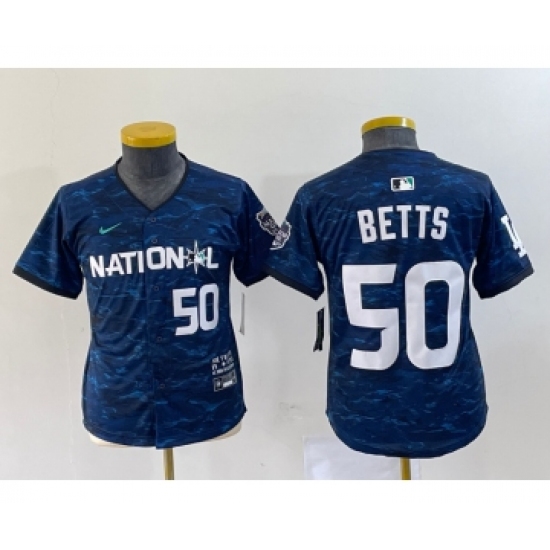 Youth Nike Los Angeles Dodgers #50 Mookie Betts Number Royal 2023 All star Cool Base Stitched Jersey