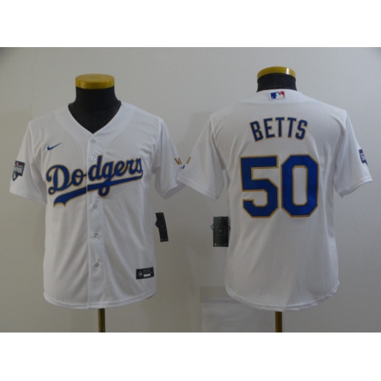 >Youth Nike Los Angeles Dodgers #50 Mookie Betts White Series Champions Authentic Jersey
