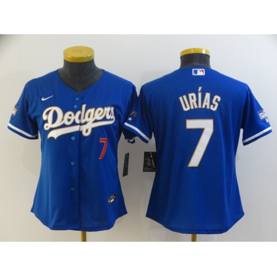 Women's Los Angeles Dodgers #7 Julio Urias Blue 2020 World Series Cool Base Nike Jersey2