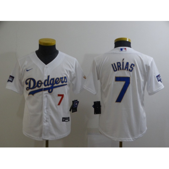 Youth Nike Los Angeles Dodgers #7 Julio Urias White Series Champions Authentic Jersey