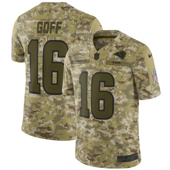 >Youth Nike Los Angeles Rams #16 Jared Goff Limited Camo 2018 Salute to Service NFL Jersey
