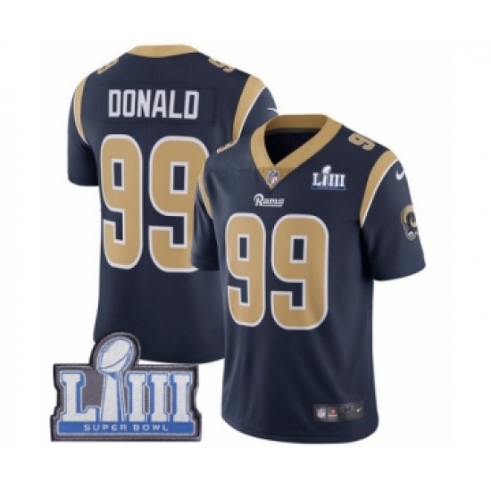 >Youth Nike Los Angeles Rams #99 Aaron Donald Navy Blue Team Color Vapor Untouchable Limited Player Super Bowl LIII Bound NFL Jersey
