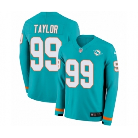 Youth Nike Miami Dolphins #99 Jason Taylor Limited Aqua Therma Long Sleeve NFL Jersey