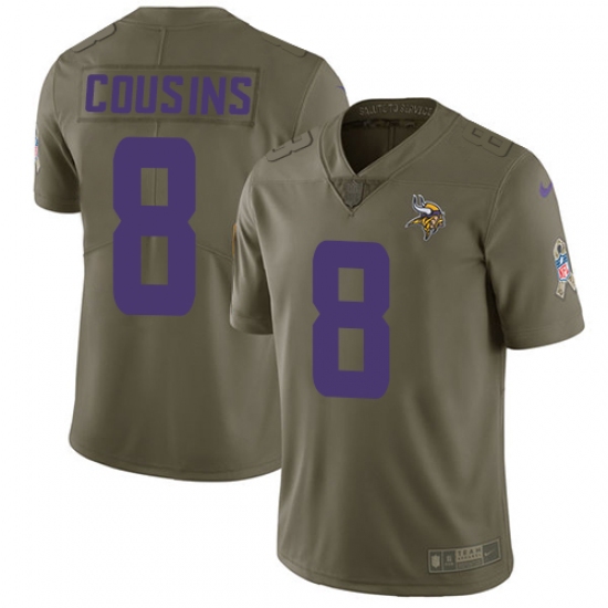 >Youth Nike Minnesota Vikings #8 Kirk Cousins Limited Olive 2017 Salute to Service NFL Jersey