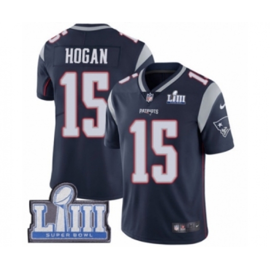 Youth Nike New England Patriots #15 Chris Hogan Navy Blue Team Color Vapor Untouchable Limited Player Super Bowl LIII Bound NFL Jersey