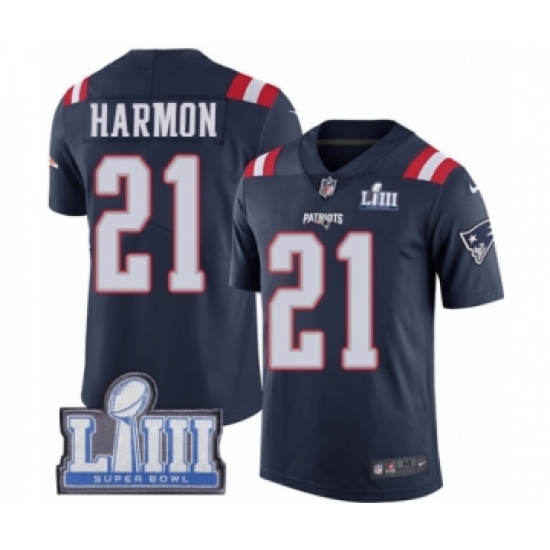 Youth Nike New England Patriots #21 Duron Harmon Limited Navy Blue Rush Vapor Untouchable Super Bowl LIII Bound NFL Jersey