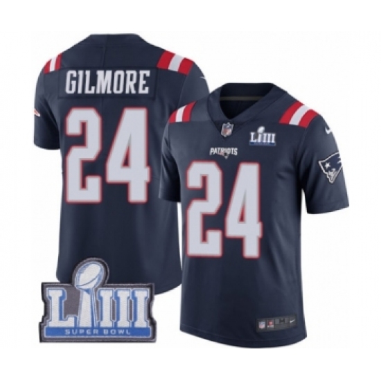 >Youth Nike New England Patriots #24 Stephon Gilmore Limited Navy Blue Rush Vapor Untouchable Super Bowl LIII Bound NFL Jersey