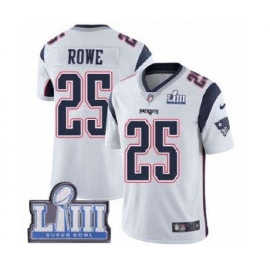 Youth Nike New England Patriots #25 Eric Rowe White Vapor Untouchable Limited Player Super Bowl LIII Bound NFL Jersey