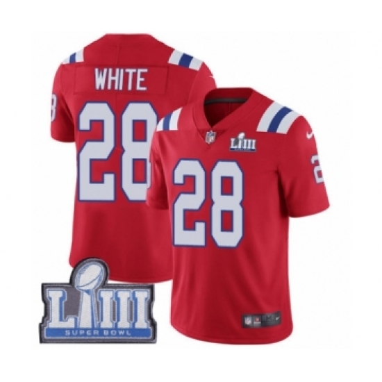 Men's Nike New England Patriots #28 James White Red Alternate Vapor Untouchable Elite Player Super Bowl LIII Bound NFL Jersey