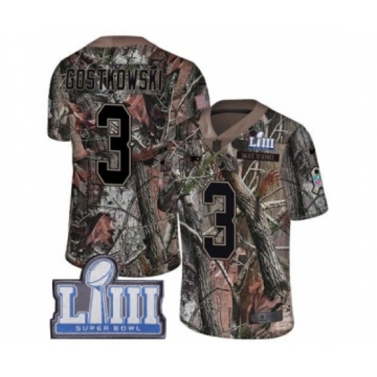 >Youth Nike New England Patriots #3 Stephen Gostkowski Camo Untouchable Limited Super Bowl LIII Bound NFL Jersey