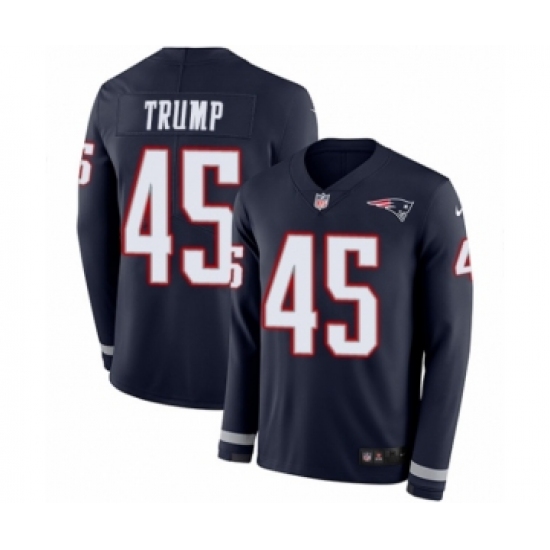 >Youth Nike New England Patriots #45 Donald Trump Limited Navy Blue Therma Long Sleeve NFL Jersey