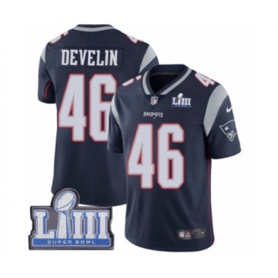 Men's Nike New England Patriots #46 James Develin Limited Navy Blue Rush Vapor Untouchable Super Bowl LIII Bound NFL Jersey