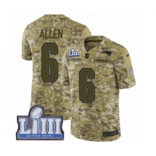 Youth Nike New England Patriots #6 Ryan Allen Limited Camo 2018 Salute to Service Super Bowl LIII Bound NFL Jersey