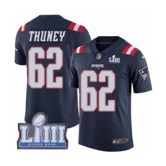 Youth Nike New England Patriots #62 Joe Thuney Limited Navy Blue Rush Vapor Untouchable Super Bowl LIII Bound NFL Jersey
