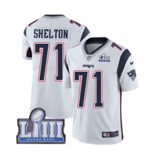 Youth Nike New England Patriots #71 Danny Shelton White Vapor Untouchable Limited Player Super Bowl LIII Bound NFL Jersey