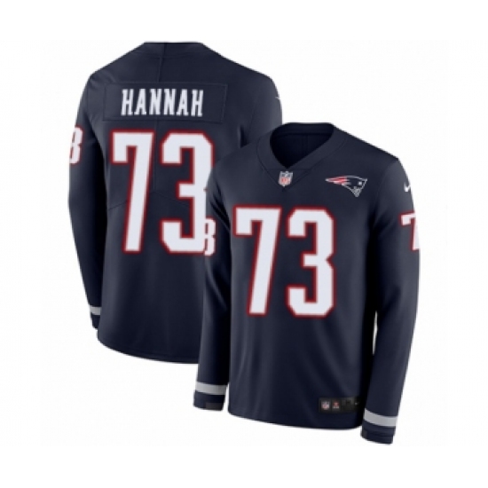 >Youth Nike New England Patriots #73 John Hannah Limited Navy Blue Therma Long Sleeve NFL Jersey