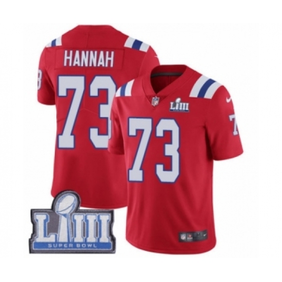 >Youth Nike New England Patriots #73 John Hannah Red Alternate Vapor Untouchable Limited Player Super Bowl LIII Bound NFL Jersey