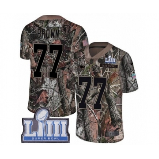 Youth Nike New England Patriots #77 Trent Brown Camo Untouchable Limited Super Bowl LIII Bound NFL Jersey