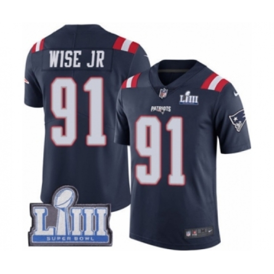 Youth Nike New England Patriots #91 Deatrich Wise Jr Limited Navy Blue Rush Vapor Untouchable Super Bowl LIII Bound NFL Jersey