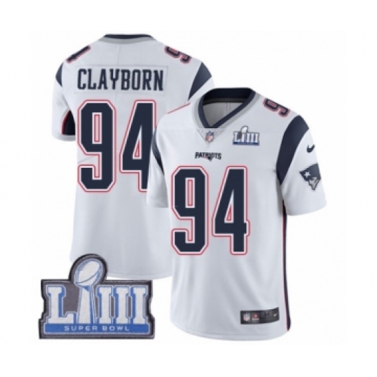 Youth Nike New England Patriots #94 Adrian Clayborn White Vapor Untouchable Limited Player Super Bowl LIII Bound NFL Jersey