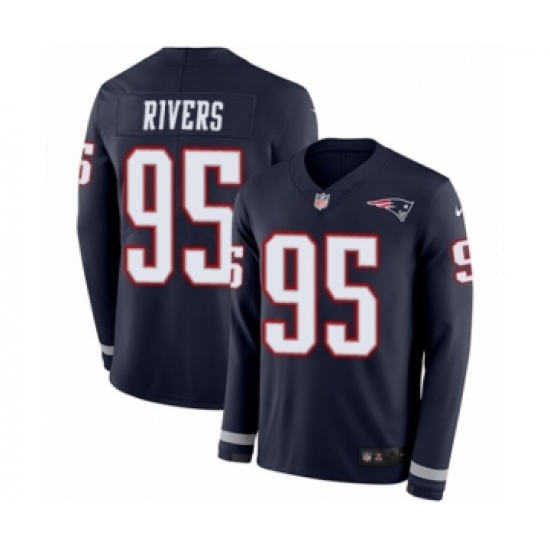 Youth Nike New England Patriots #95 Derek Rivers Limited Navy Blue Therma Long Sleeve NFL Jersey