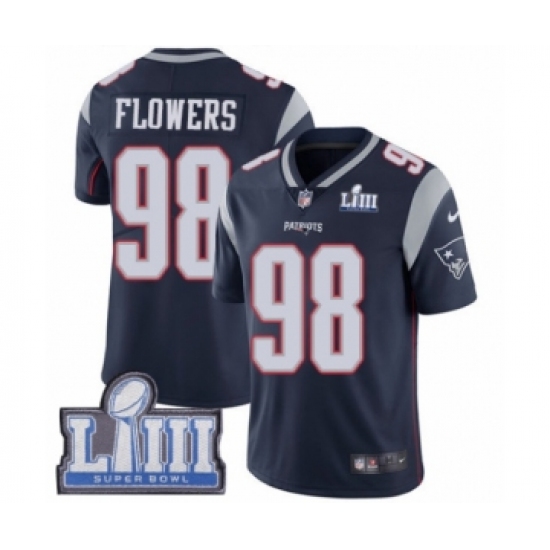 Youth Nike New England Patriots #98 Trey Flowers Navy Blue Team Color Vapor Untouchable Limited Player Super Bowl LIII Bound NFL Jersey
