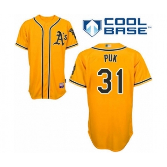 >Youth Oakland Athletics #31 A.J. Puk Authentic Gold Alternate 2 Cool Base Baseball Player Jersey